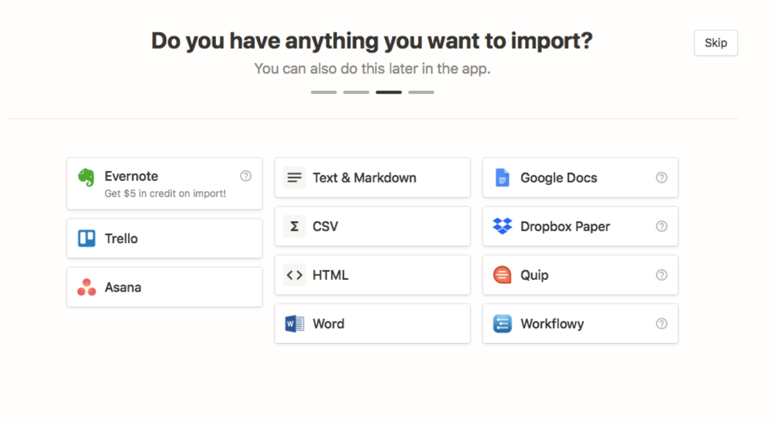You land inside Notion and see “Import from your tools” (Evernote right there, waiting).