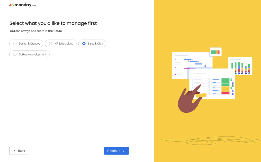 When you sign up, Monday doesn’t drop everyone into the same blank board.